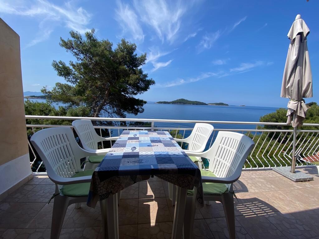 Denize yakın, 4 kişilik, diğer 2 daireli bir evde konforlu, aydınlık daire. Prižba'nın tüm girişinde manzaralı balkonu vardır. Aile veya arkadaş grupları için uygundur. Otopark ve özel bir plaj alanı.