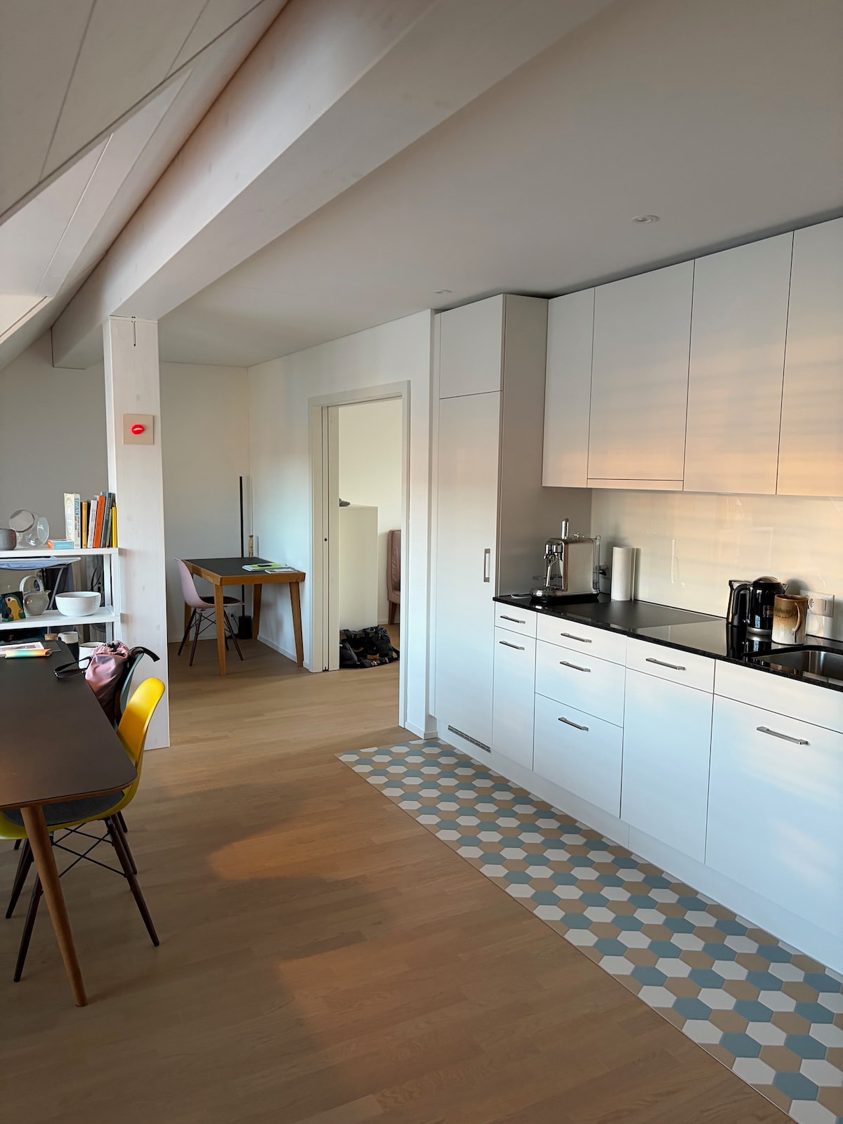 Zürih'in ortasındaki bu şık çatı katı stüdyosunda yaşayın, rahatlayın, çalışın, yemek pişirin, ancak sessiz bir sokakta güzel manzaralara (5. kat - asansör yok) sahip. - Tamamen mobilyalı. - Kahve istasyonu/kahve makinesi. - Küçük güzel balkon. - Kral boy kutu - bahar yatağı (160x200) - Sinema deneyimi için HD Hazırlayıcı - Çalışma masası istasyonu - Pencereli modern banyo, çamaşır makinesi ve kurutucu. - Rahat masa yemek alanı - Büyük gardırop alanı. - Panjur takın. - İstek üzerine özel otopark (15 CHF/gece)